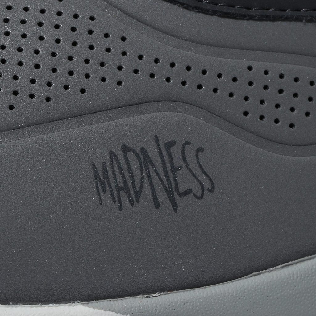 是次New Balance與MADNESS的聯乘貫穿「內有炫機」的設計概念,鞋盒選用低調的深灰色並印有「All Work And No Play Makes You Mad.」字句,與鞋盒內充滿反光元素的997S形成鮮明對比。兩雙997S分別以灰色(MS997SMW)及白色(MS997SMX)為主色,鞋身以合成皮革製作,連同鞋身的「N」字Logo均配以反光物料。灰色的997S以螢光綠色點綴,而白色的一雙就配上螢光橙色,從鞋墊到鞋帶均一致用上點綴的配色。至於MADNESS元素亦滿佈997S的內外,印有品牌名稱的小標籤設於鞋跟附近位置,而鞋墊及附送的兩款鞋帶也印有「All Work」,配合鞋頭的MADNESS Logo,展現出New Balance與MADNESS合作的獨有魅力。