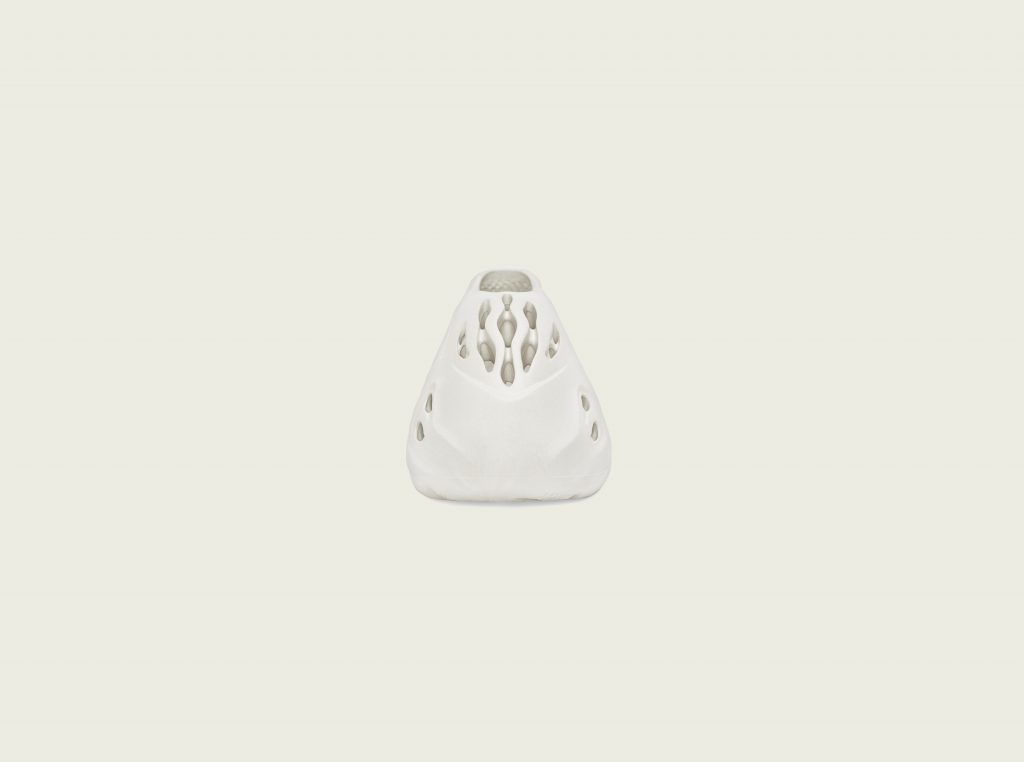 YZY FOAM RUNNER MX Moon Gray採用一體成型的設計,以EVA泡棉材質及環保藻類物料製成,輕巧耐用,更有助保持湖泊生態健康平衡。鞋床柔軟舒適,鞋身獨特的穿孔設計則提供絕佳透氣感。YZY FOAM RUNNER 亦採用以較少物料製作的鞋盒,減少浪費。