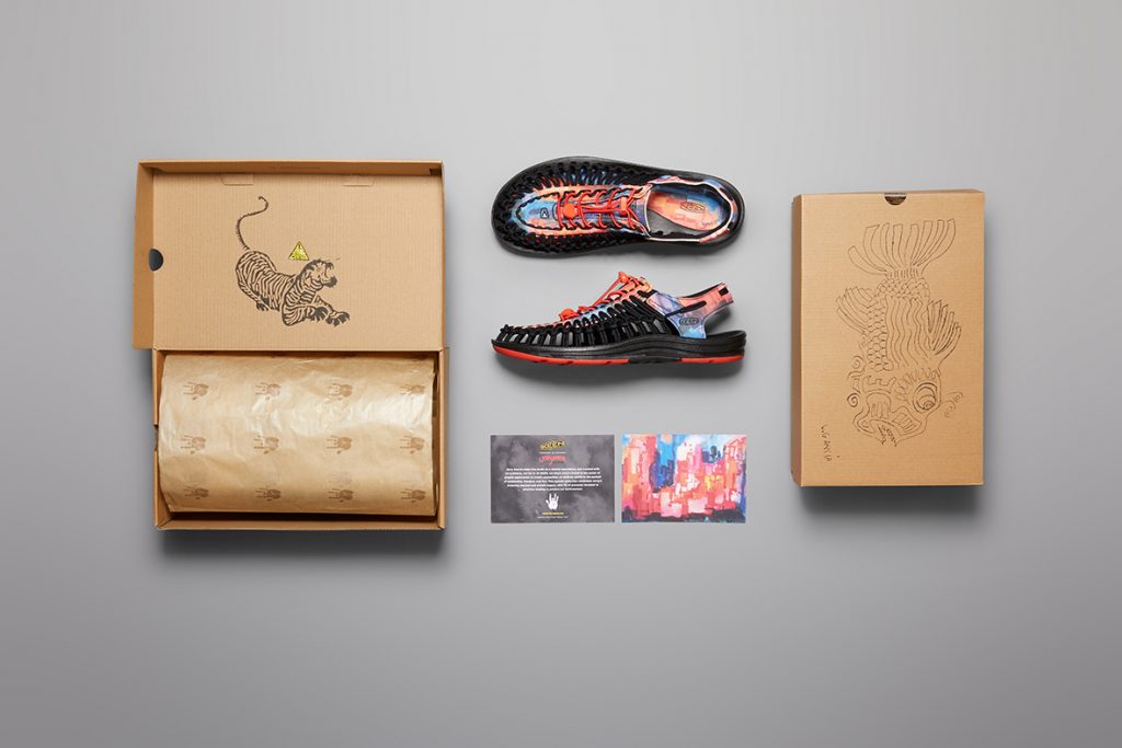 今次聯乘版的 UNEEK 以及 NEWPORT H2以 Jerry Garcia 的藝術作品《BANYAN TREE》以及《NEW YORK AT NIGHT》作為基礎出發,讓抽象的色彩幻化成兩款作品的鞋面設計,而精美設計的鞋盒上更別出心裁地綴上 Garcia 的畫作《Fish》及他生前鍾愛的吉他「Tiger」的圖案。Garcia 作品抽象唯美的風格跟 UNEEK 時刻貼合腳型又輕量舒適的機能設定互相結合,擊碰出前所未有的火花;而具備護趾設計的 NEWPORT H2 更在水陸兩用的靈活性以外,加添讓人耳目一新的色彩。